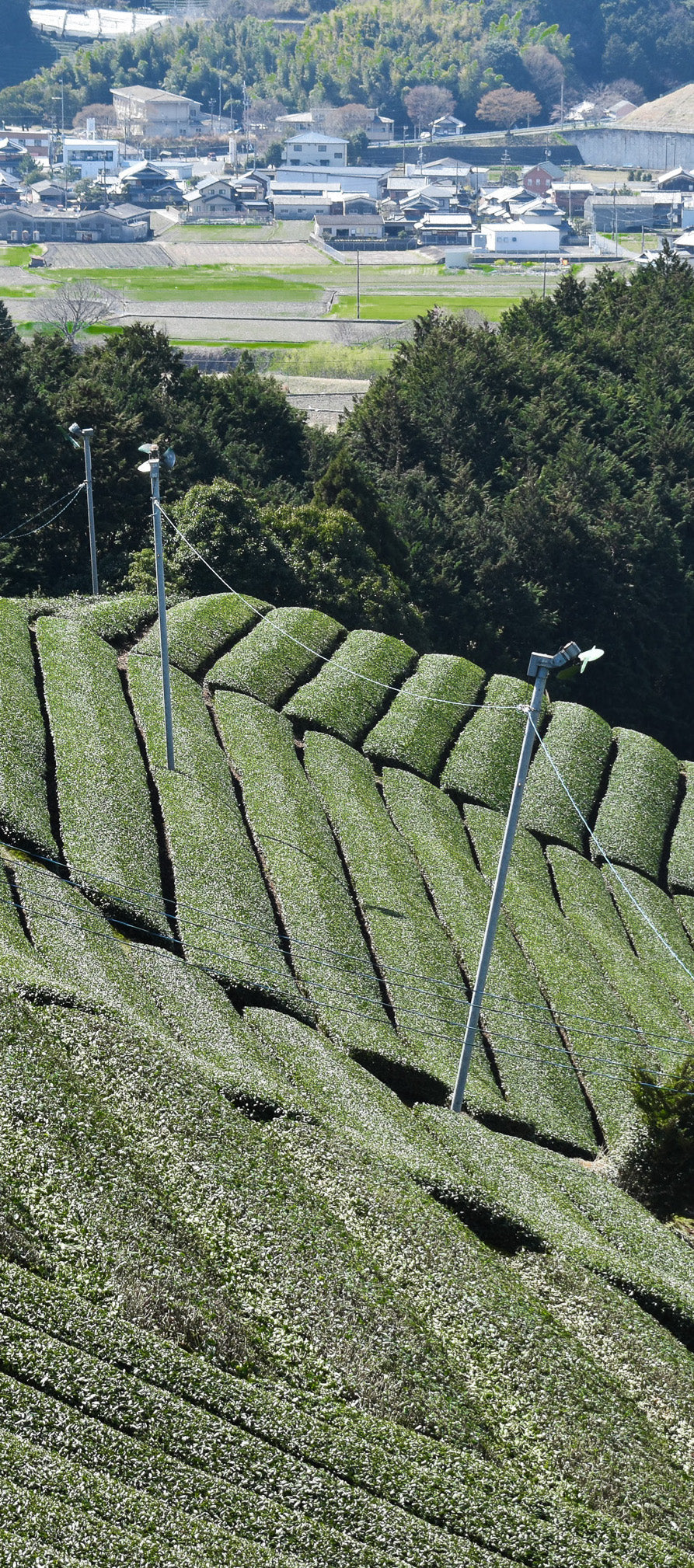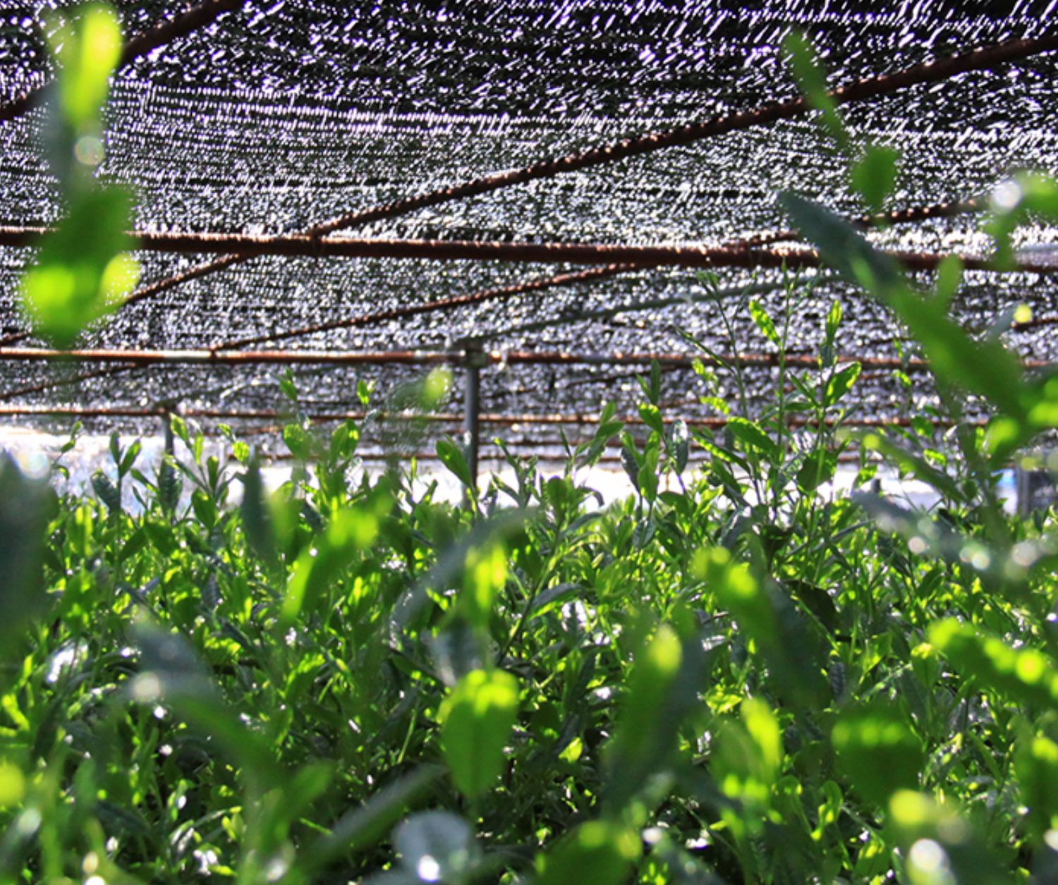 The shading enables new leaf shoots to develop without exposure to sunlight allowing the amino acids which bring out umami flavour within the green tea to develop, reducing the amount of astringent catechins in the leaf.