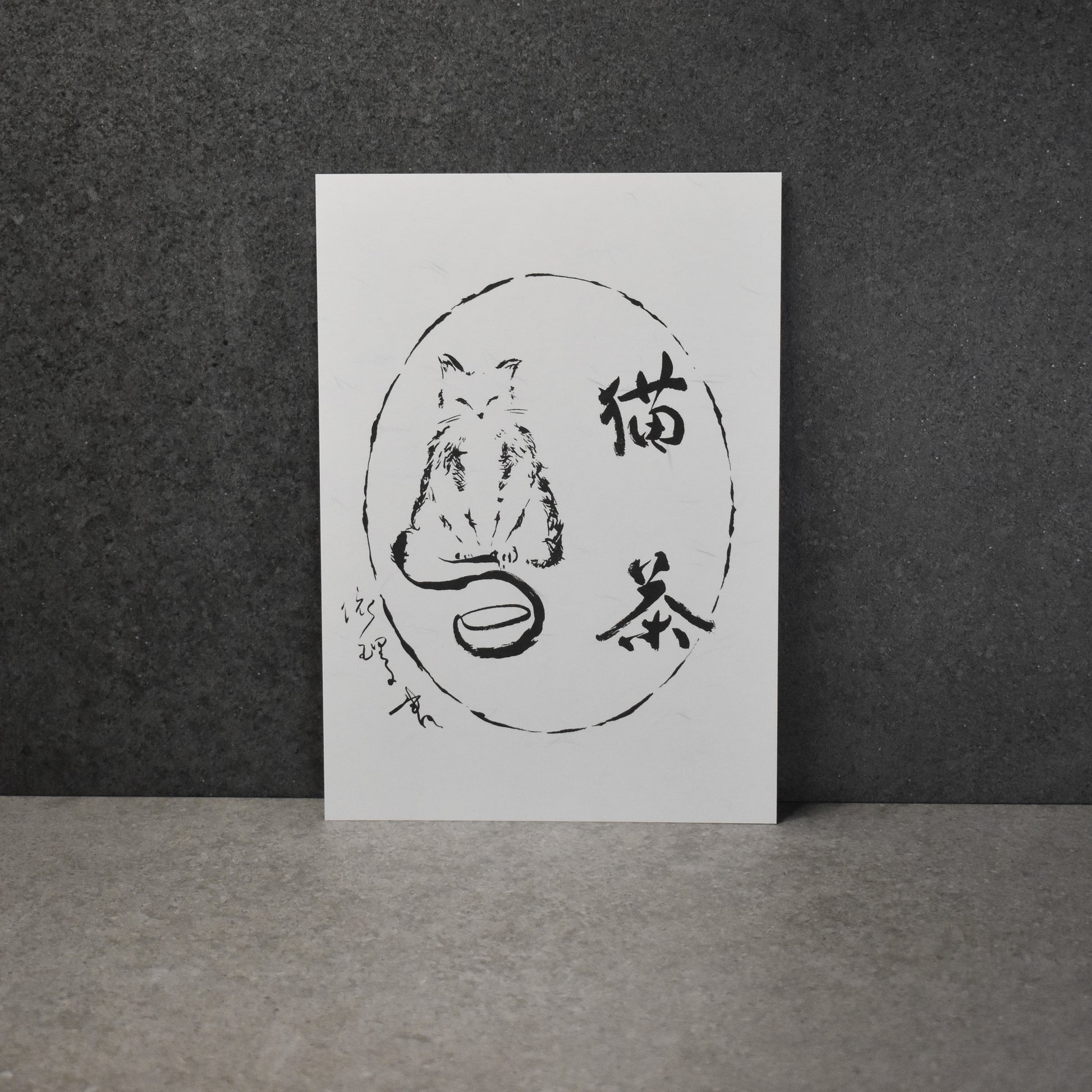 On the card: 猫 means a Cat, 茶 means Tea