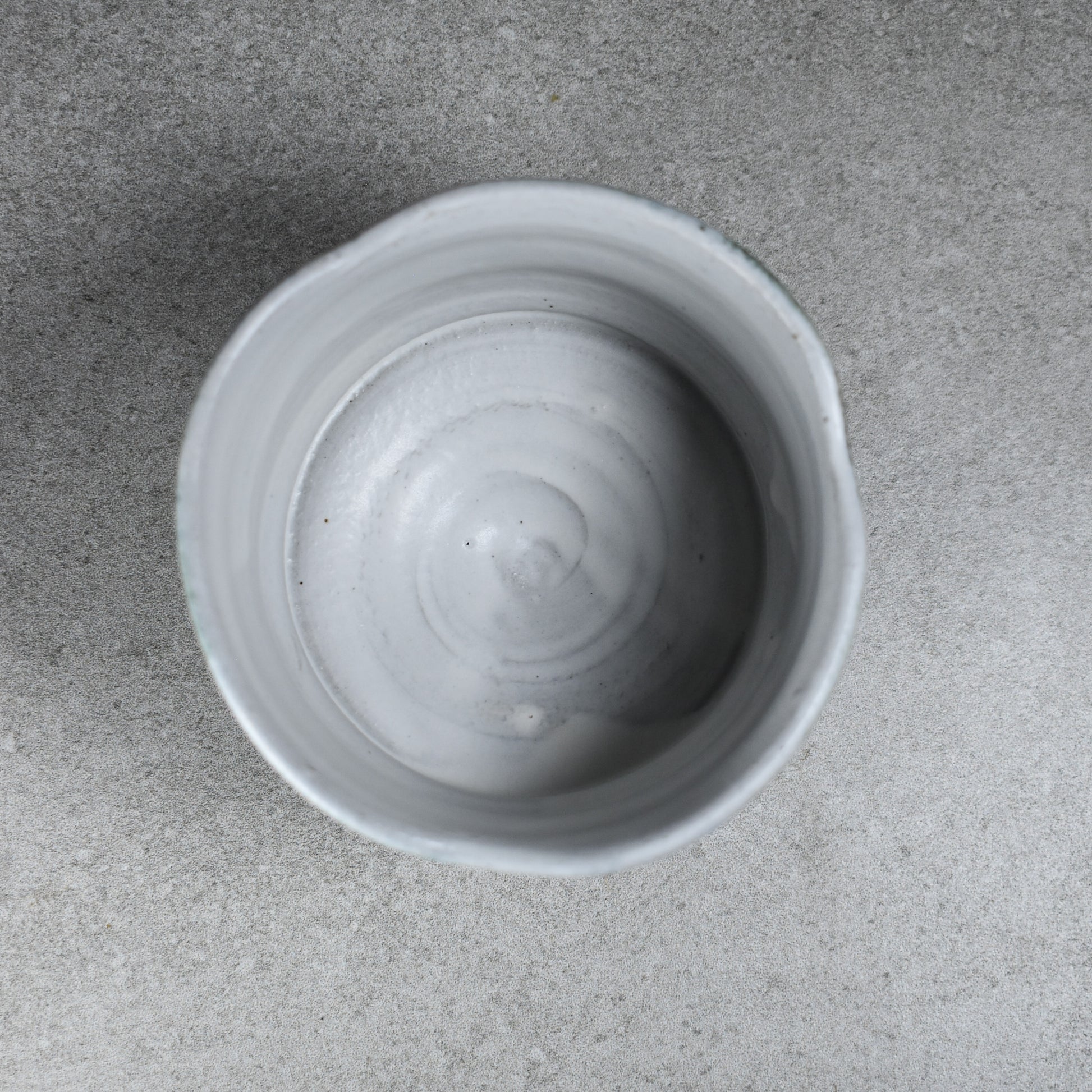 Textured and glazed with white, green and blue hues these cupas have an uneven rim and curved body that fits comfortabley in the hand.