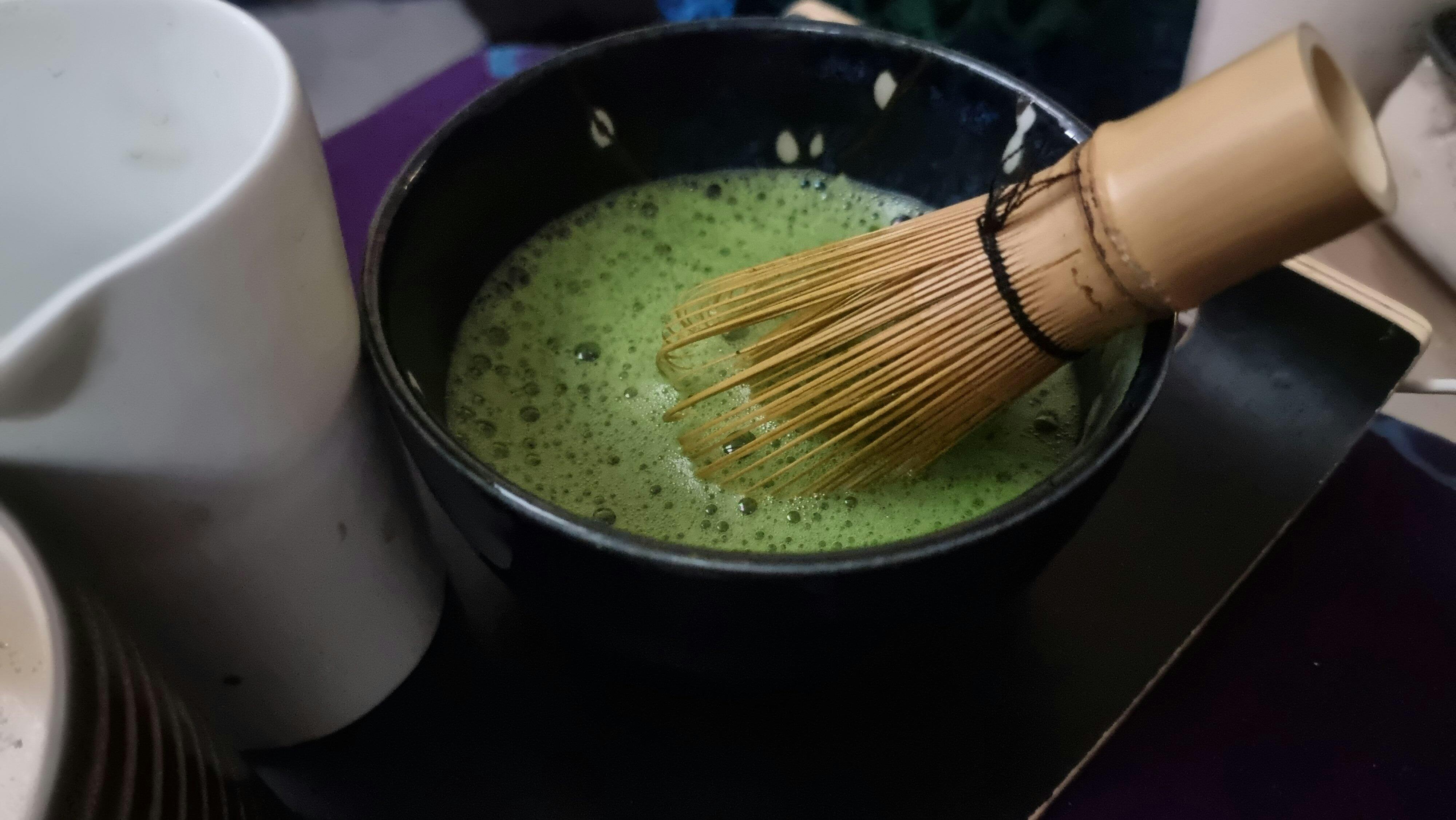 This matcha has rich nutty and almost dark chocolate like aroma with mellow umami and mild bitter flavours.