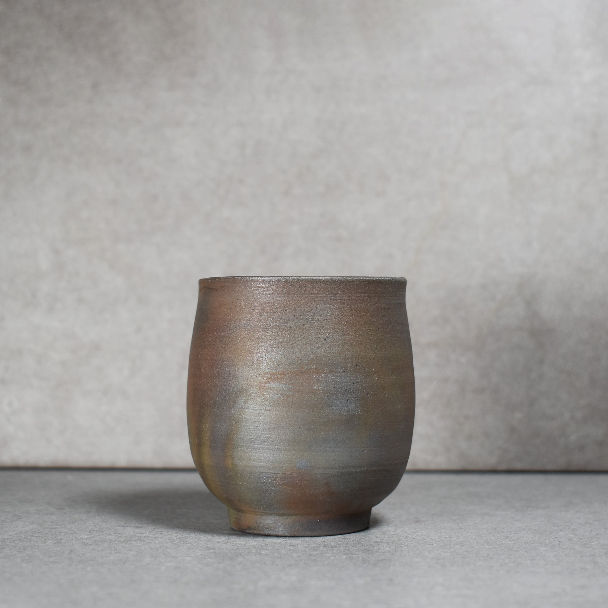 The flame glaze on each of these hand thrown cups changes depending on where they sit within the Anagama, climbing kiln.Â