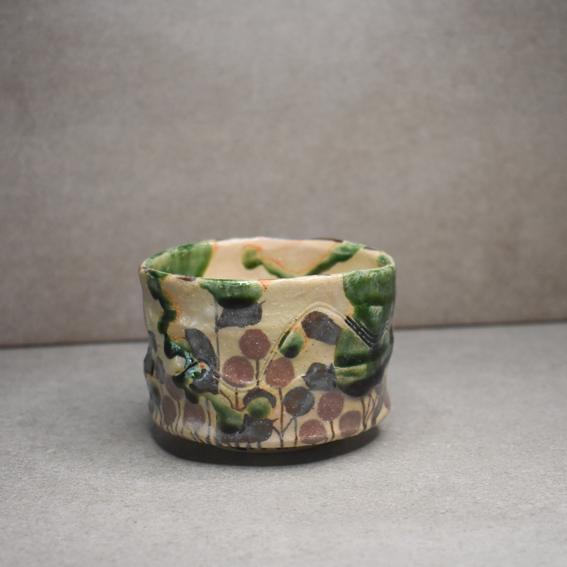 Minoyaki, Oribe flower tea bowl by Minoru TokiÂ