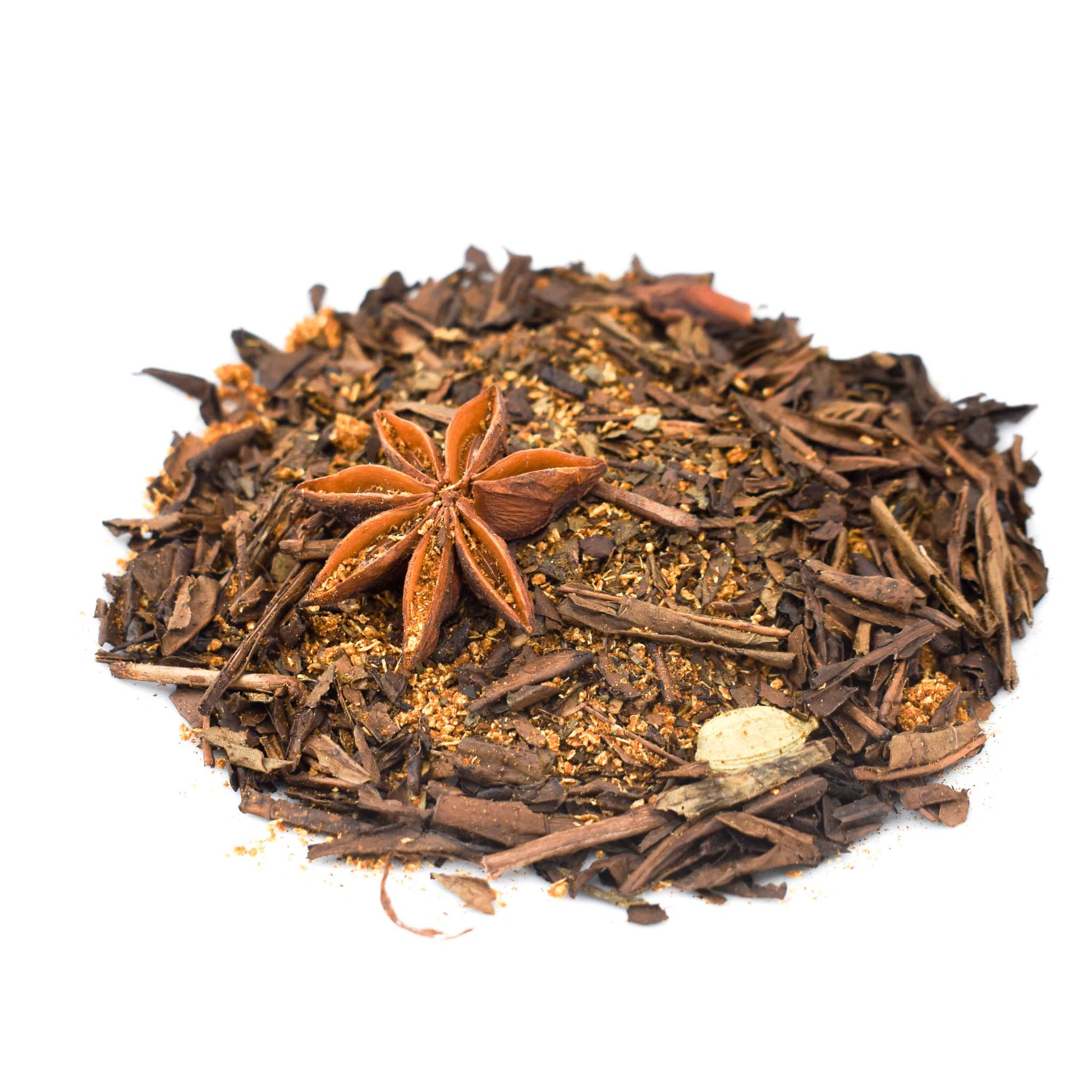 Think chai latte but make it extra toasty with roasted hojicha tea and a touch coconut. This hoji-chai has been blended into a powder making it easy to create blissful spiced hojicha lattes at home.