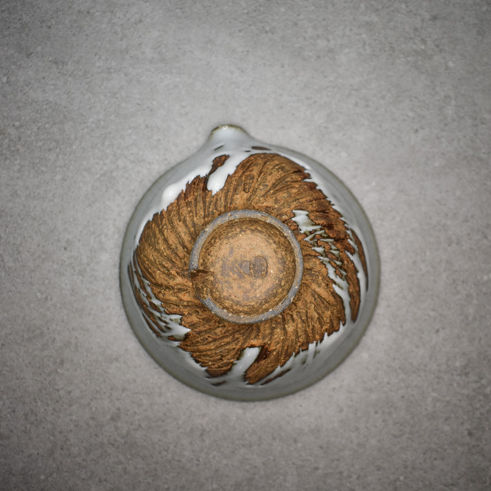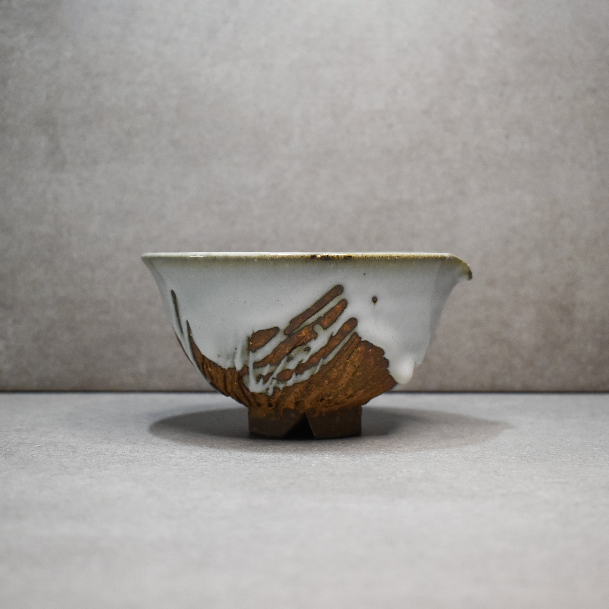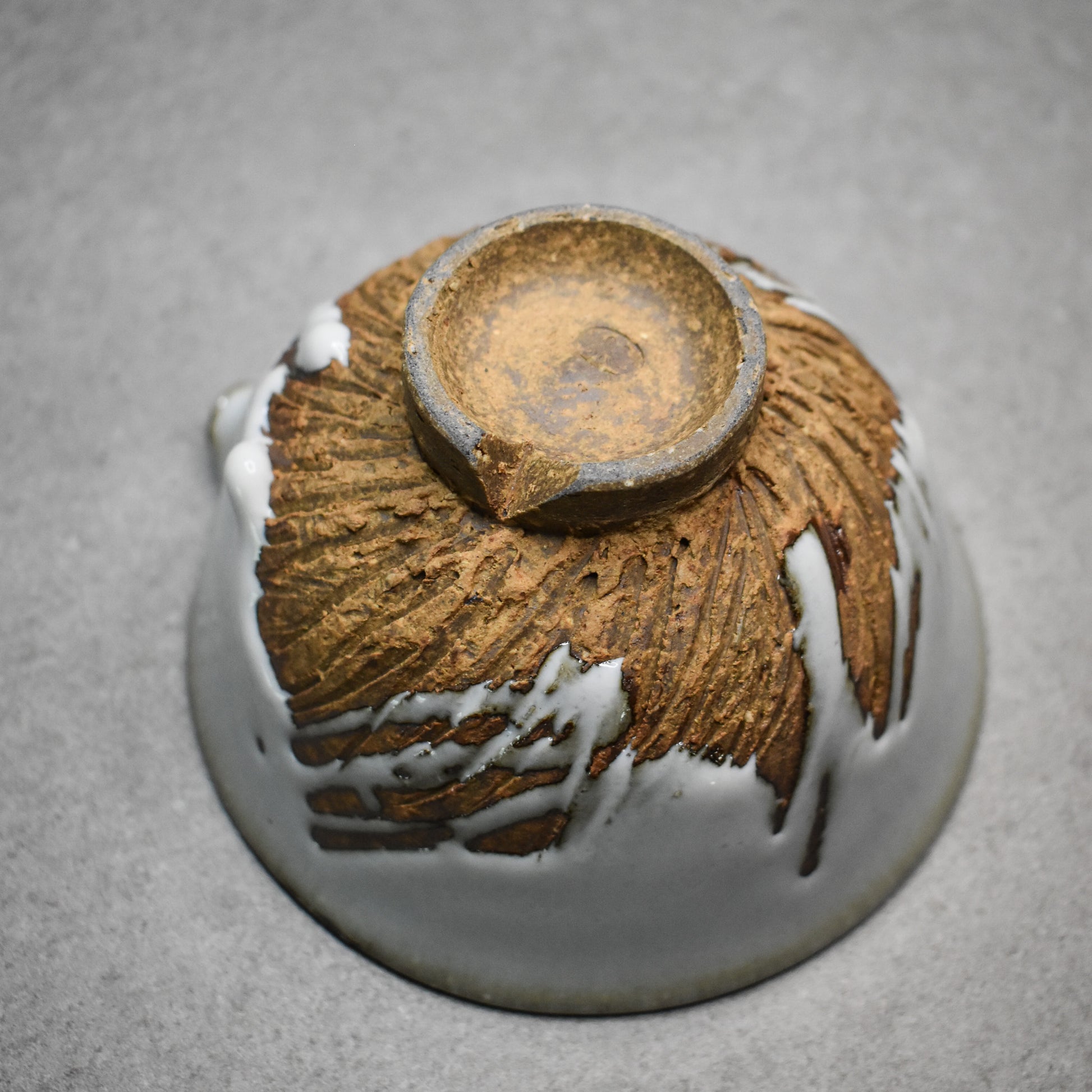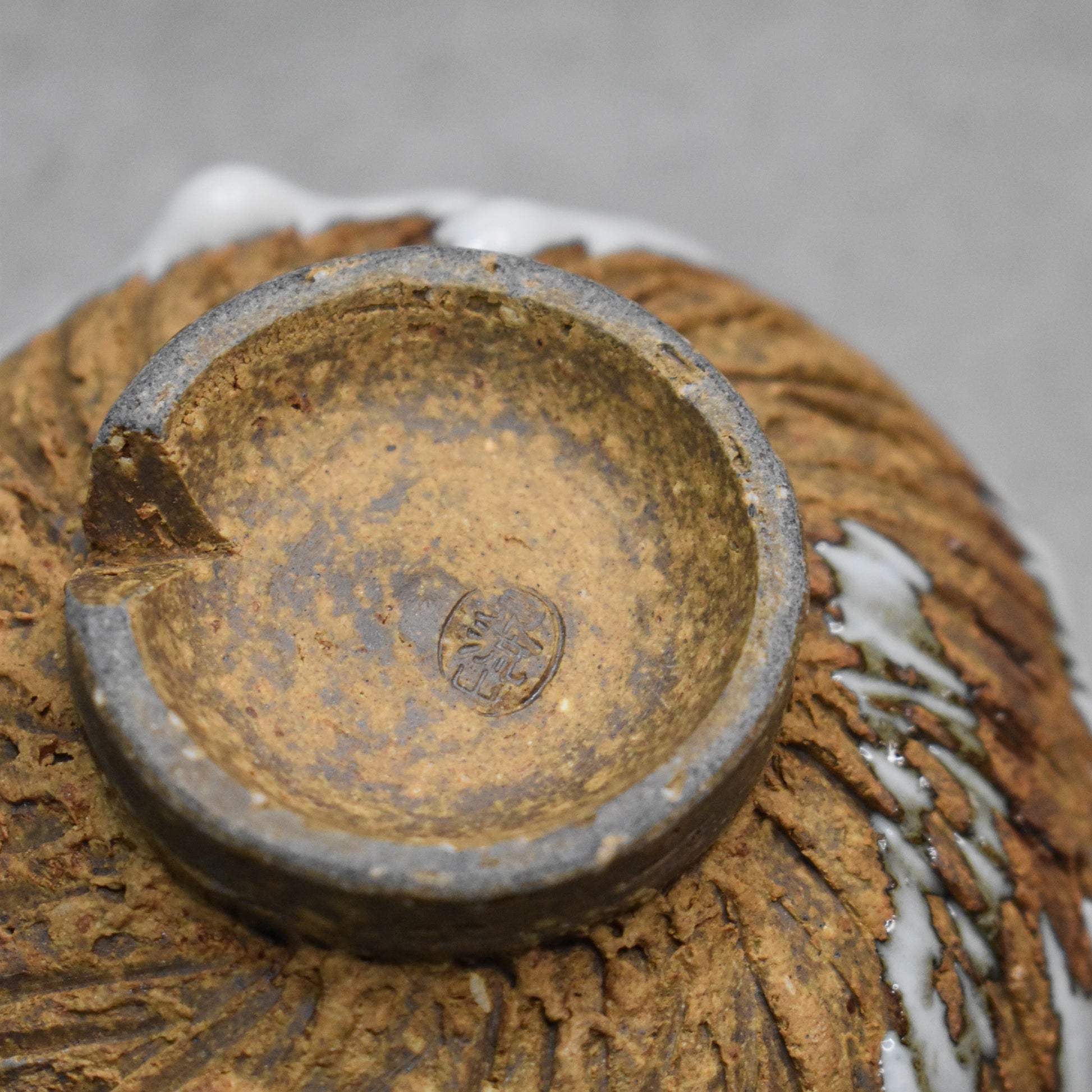 This chawan is glazed with straw ash. Each piece is unique as the pattern made by the glaze can never be recreated exactly. Enjoy the contrast between white and dark reddish brown, as well as the earthenware taste.