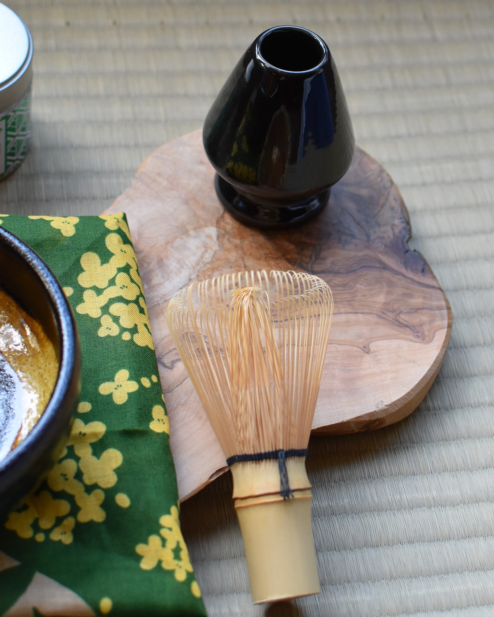 The chasen-tate helps you to extend the life of your bamboo whisk by allowing the prongs to dry facing downward stopping the water from pooling in the base of the whisk and helping to prevent rotting.