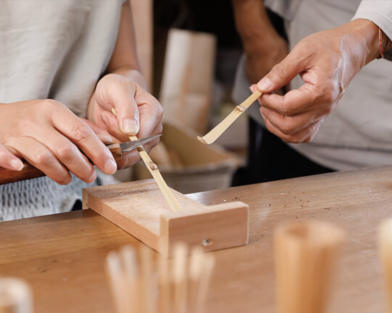 About Suikaen: The chasen has more than 530 years of history and this family has been continuously making Chasen for over 500 years. The current family head is the 25th generation to make these whisks in the same way that his ancestors did. The tools and techniques that are used today are the same as 500 years ago.