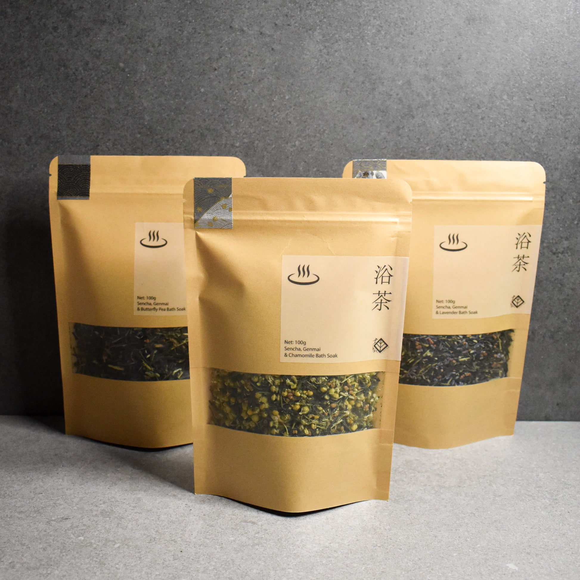 Inspired by our time staying in a converted tea factory in Yame, Fukuoka we have created these bath soaks from Kyoto sencha green tea, genmai toasted rice and organically grown chamomile flowers.Â