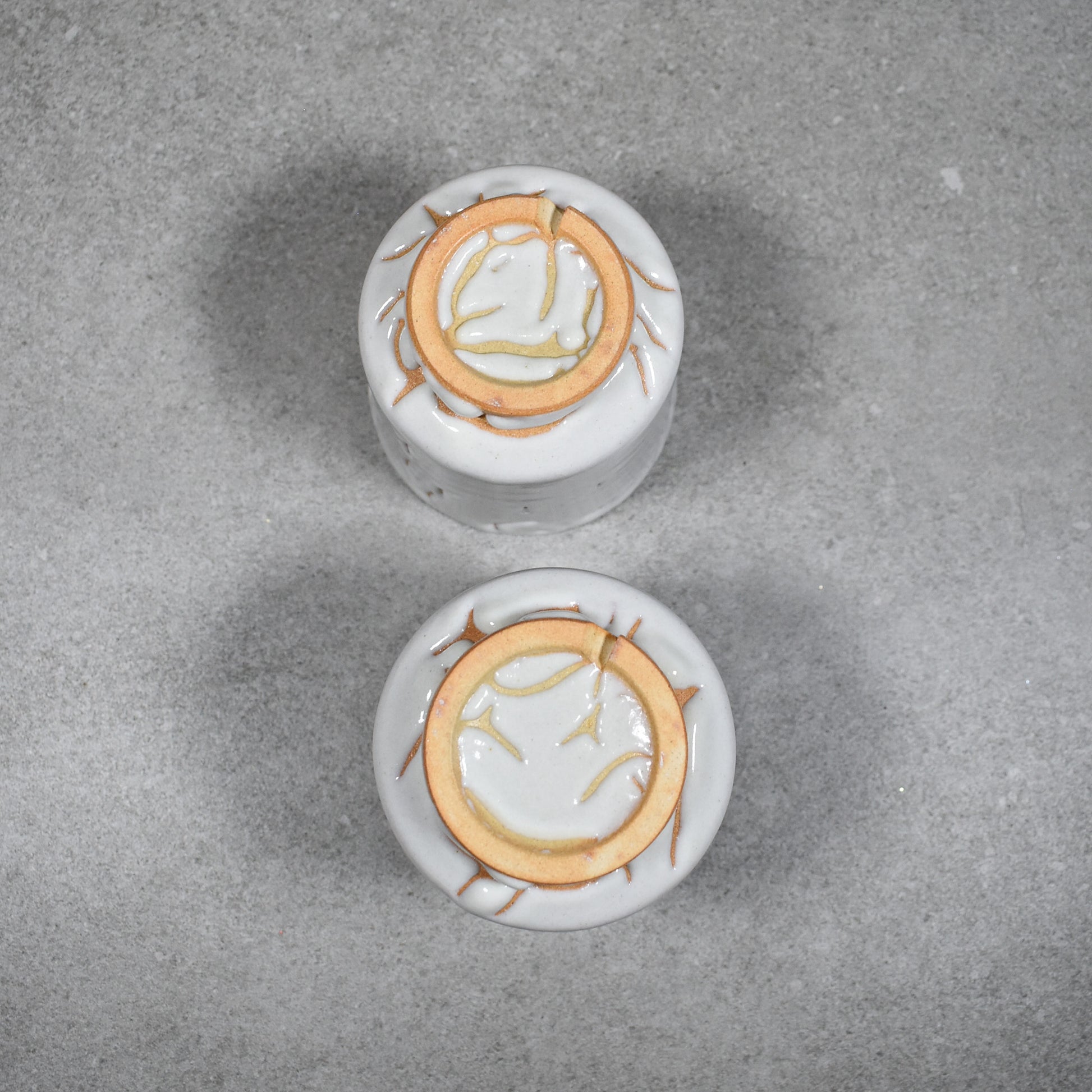 This crackle feature on the surface of the glaze is typical of hagi-yaki ceramics and is seen as part of the charm of these tea vessels. When the tea cups are used the tea is absorbed through these fine cracks into the soft clay beneath. This slowly stains making the crackle glaze more visible. This gradual change in colour is commonly referred to as âthe seven transformations of Hagiâ or âHagi no nanabakeâ.