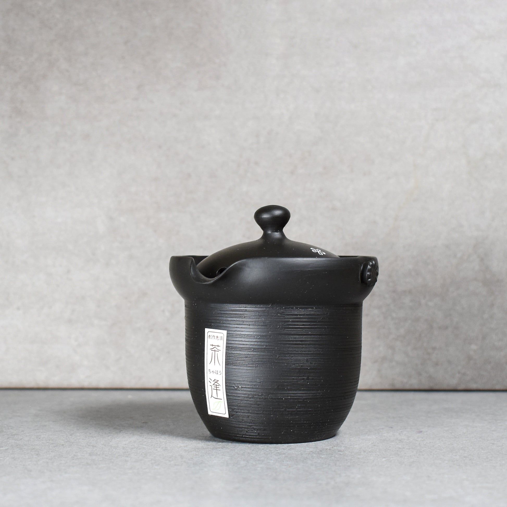 This is a more modern design of handless Japanese tea pot, developed in Tokoname, that is a hybrid of a Shiboridashi and Hohin. There are three sakura flowers carved into the lid of the pot and the body has a textured design.